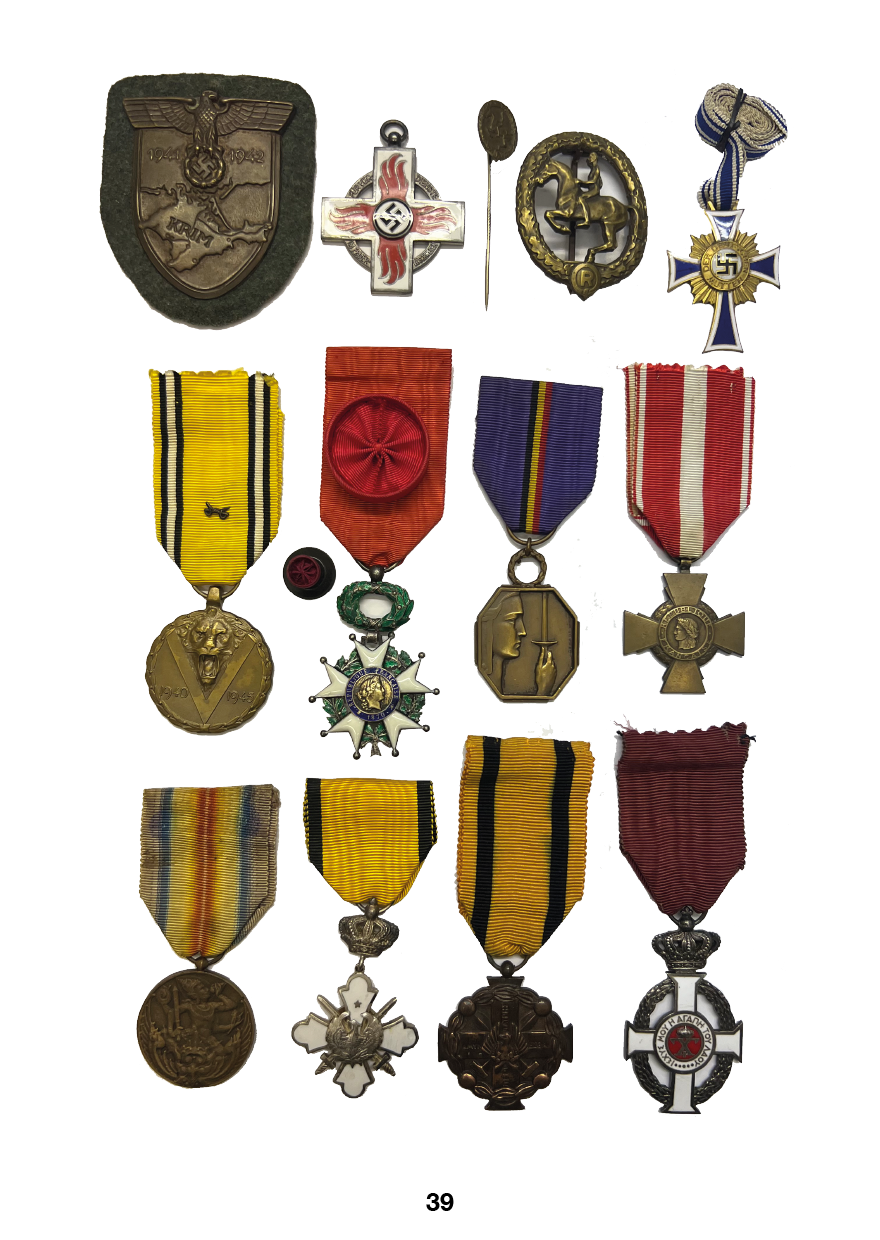 b / 3 | Non-Combattant trio, as : War Merit Cross no swords, 1938 Cross of Honour without swords, and Nazi-era 25 years Faithful Service Cross in silver. On padded mount | £125 |
